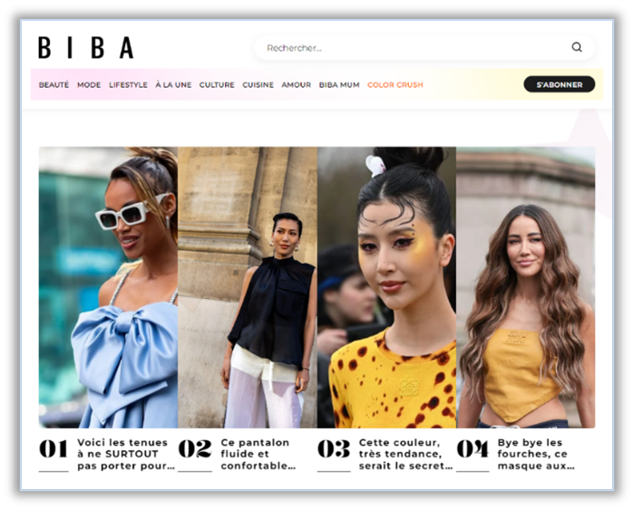 Magali BERTIN, Head of content BIBA confirme : « Avec cette nouvelle énergie, le site BIBA s’affirme comme un rendez-vous à la fois complice, tendance et averti, ancré dans la vraie vie des femmes. De nos crash-tests beauté, aux paroles d’experts en passant par toutes les nouveautés qui font le buzz, vous n’avez pas fini d’apprendre, découvrir et rire avec nous ! »